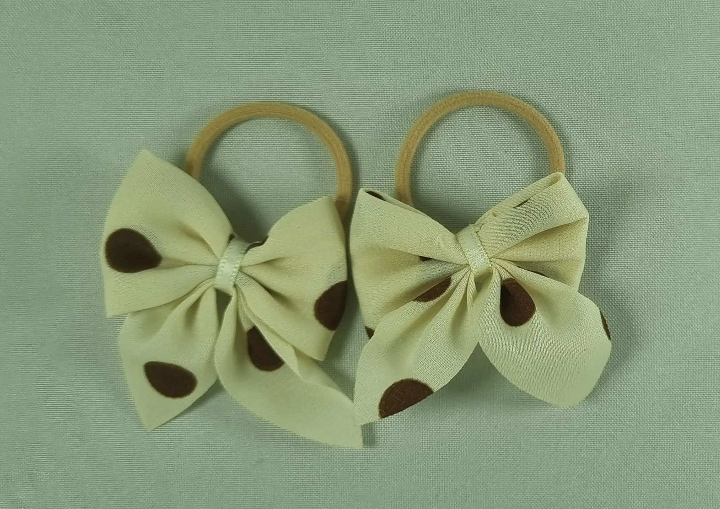 کش موی دخترانه پاپیونی خالدار سفید و قهوه ای