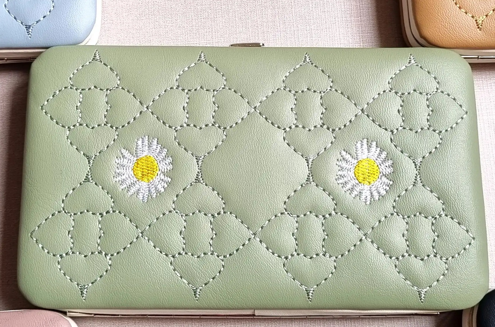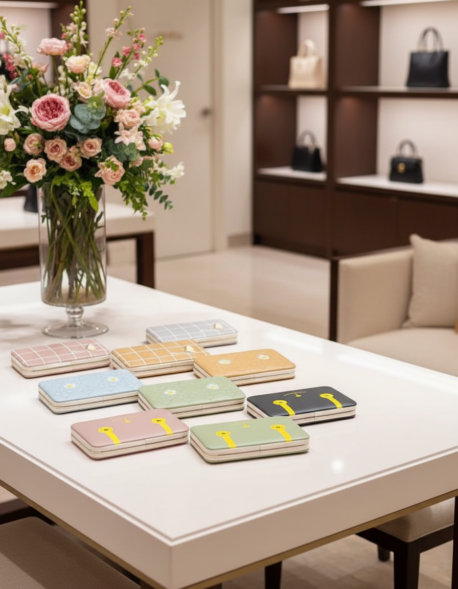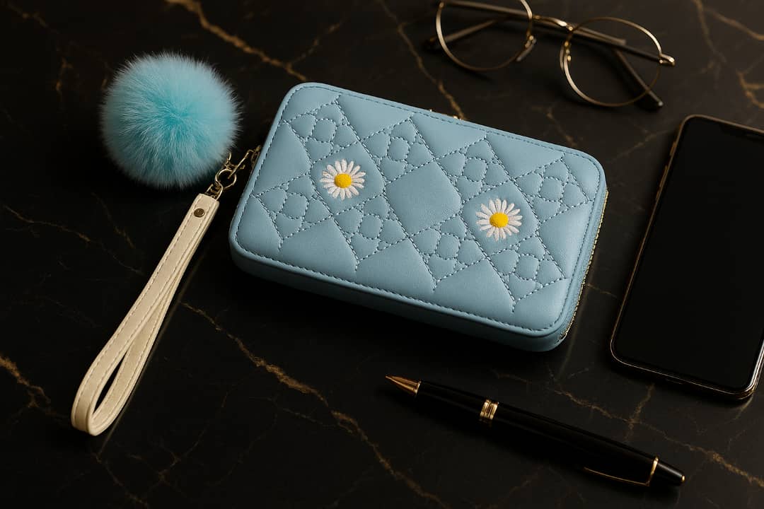دارای 9 فضا و جیب: یک فضا مخصوص موبایل، 5 جای کارت و یک جای عکس، یک جیب زیپدار و یک جای اسکناس