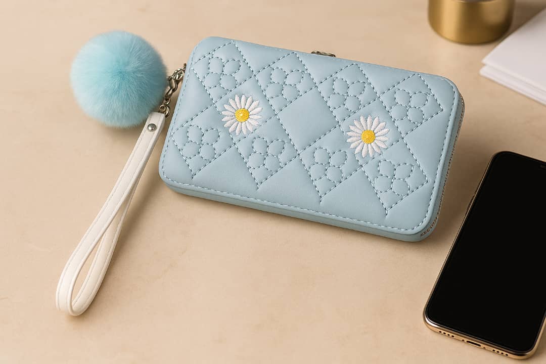 یک فضای مخصوص موبایل، 5 جای کارت و یک جای عکس، یک جیب زیپدار برای وسایل کوچک و ریز و یک جای اسکناس