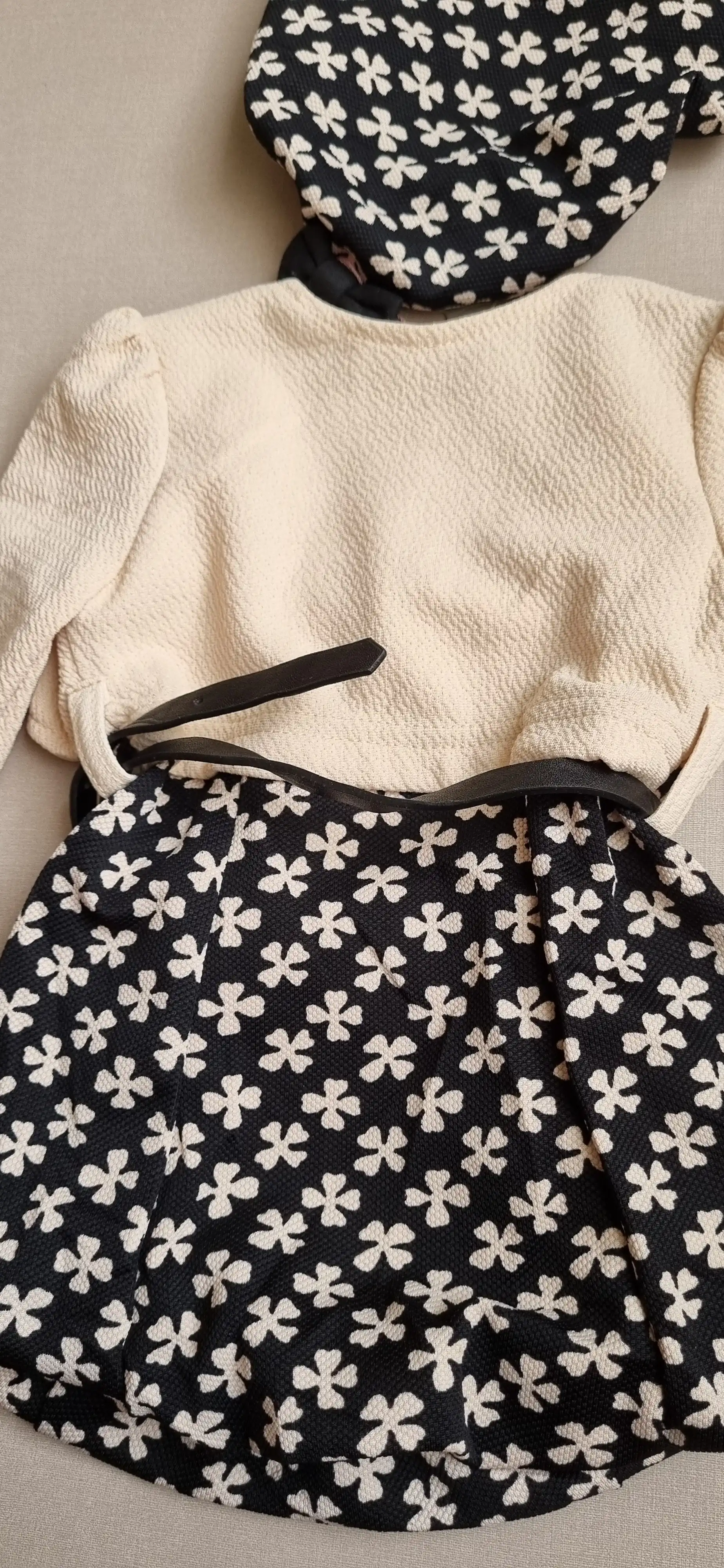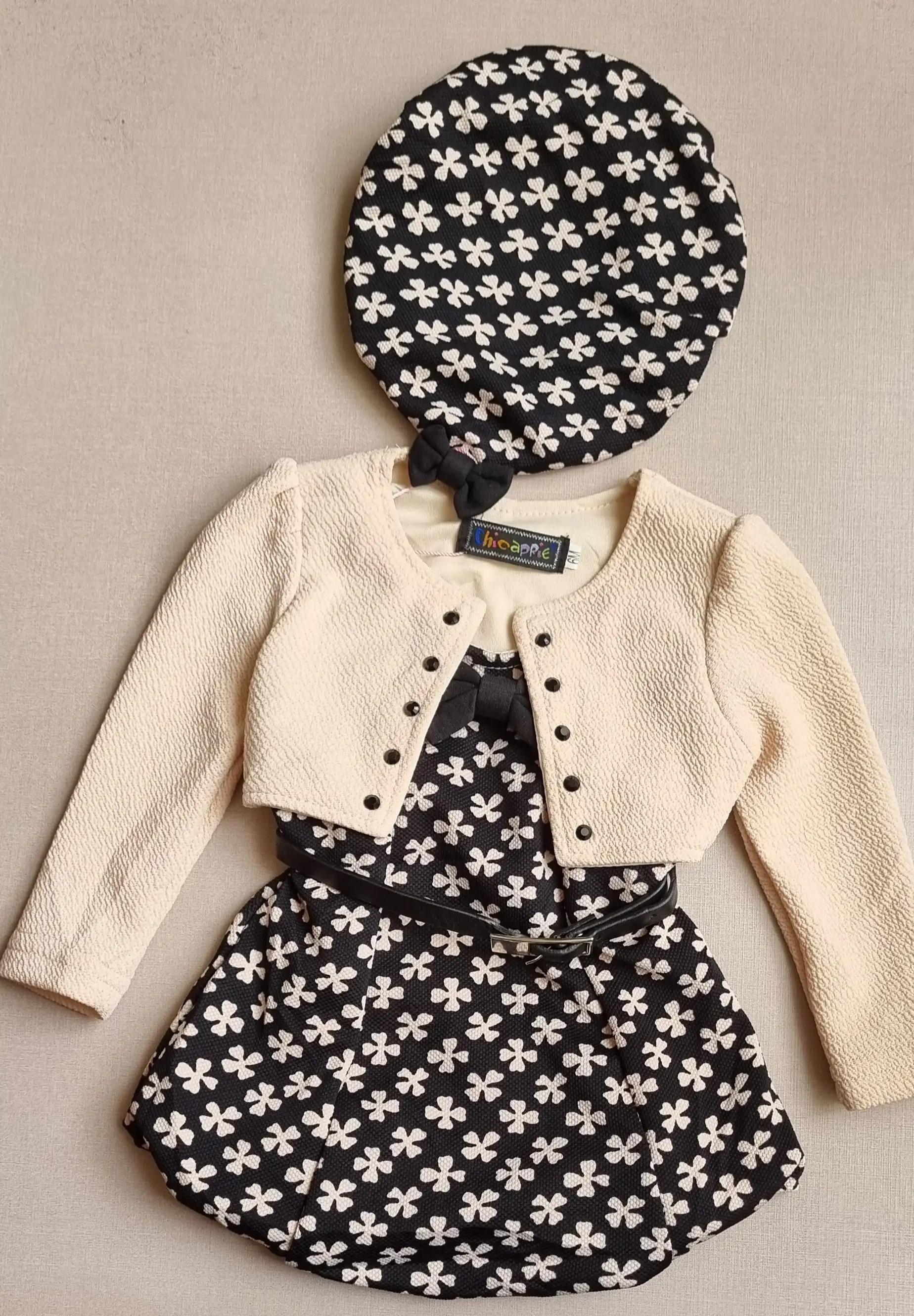 کت سارافون دخترانه مناسب نوزاد0 -6ماهه تولید کشور فرانسه،مارک chicaprieلباس شامل سه تیکه کت و سارافون چسبیده و کلاه انگلیسی و کمربند مشکی ،ترکیب رنگ کرم و مشکی با طراحی بسیار زیبا و خاص گل شبدر ،پاپیون در یقه و کلاه لباس دوخت تمیز و کیفیت عالی ،استر دوزی تمیز،جنس پارچه مناسب چهار فصل سال،اگر دنبال یک لباس تک و خاص برای فرزند خود هستید ،این همان لباس هس ،مطمئنا از این لباس تو ایران جزروفالی شاپ جای دیگه پیدا نمیکنی