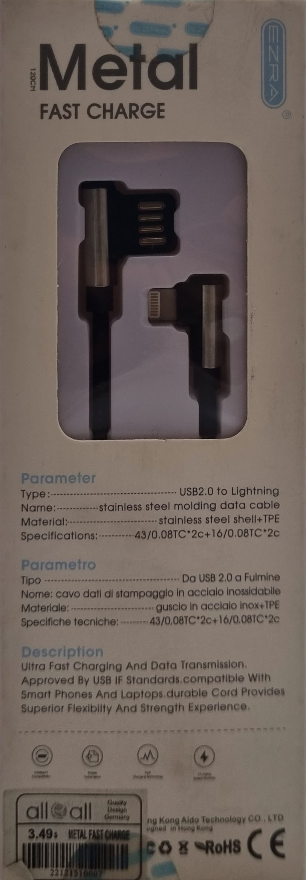 کابل شارژ موبایل لایتنینگ EZRA-DC09