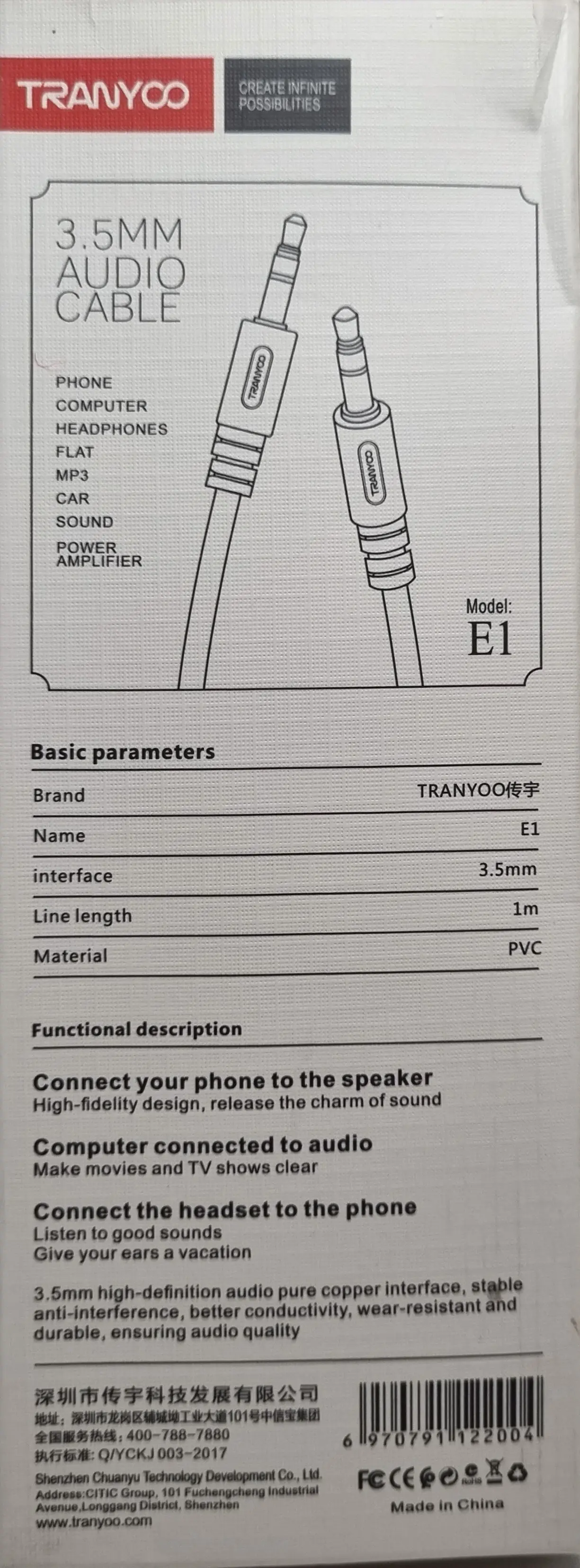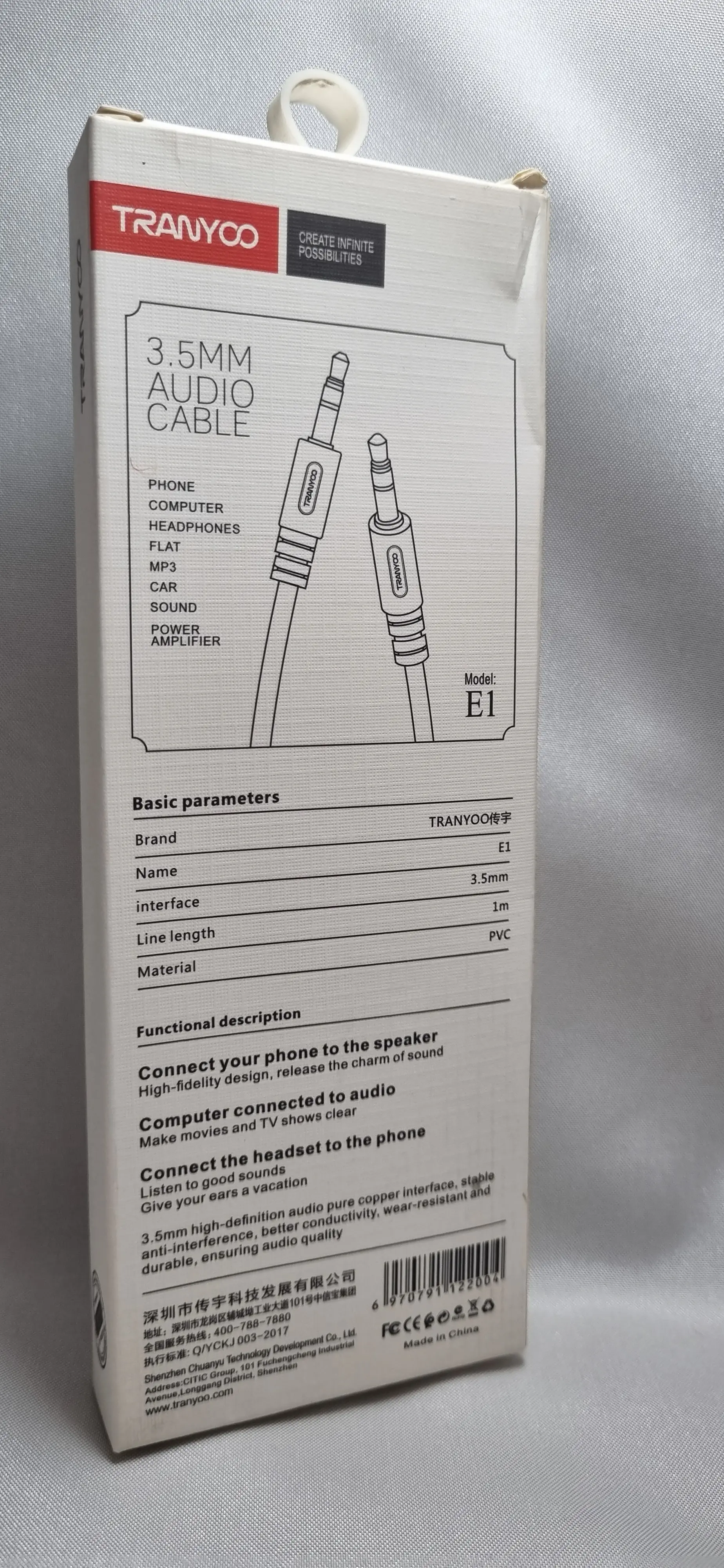 کابل صدا aux ,برند tranyooمدل E1