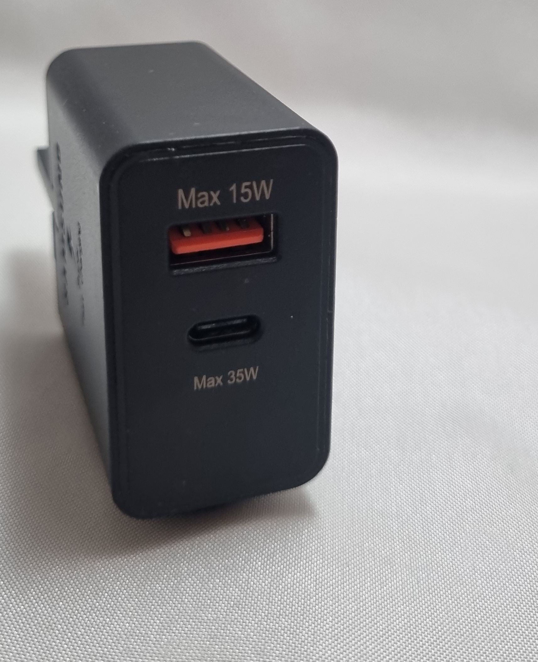 درگاه USB-C از شارژ فوق سریع با توان حداکثر 35وات پشتیبانی میکند و همچنین با استاندارد PD ۳.۰ در حالت PPS توان شارژ تا ۳۵ وات را ارائه میدهد. درگاه USB-A از فناوریهای AFC و QC با توان حداکثر ۱۵ وات پشتیبانی میکند. در حالت استفاده همزمان از هر دو درگاه (USB-C + USB-A)، مجموع توان خروجی برابر با ۲۰ وات از USB-C و ۱۵ وات از USB-A خواهد بود.
